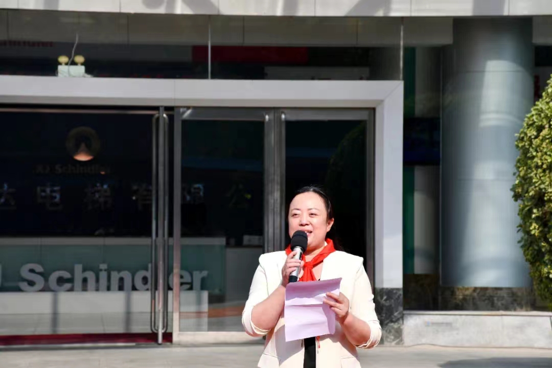 最后,公司售后總監(jiān)吳娜代表西繼迅達(dá)電梯感謝開(kāi)發(fā)區(qū)文教衛(wèi)和瑞昌路小學(xué)送來(lái)的錦旗。她說(shuō),西繼迅達(dá)作為一家 有強(qiáng)烈社會(huì)責(zé)任感的企業(yè),為了給咱們?nèi)鸩沸W(xué)的同學(xué)們營(yíng)造一個(gè)良好的學(xué)習(xí)環(huán)境,讓孩子們?cè)诟嗟年P(guān)愛(ài)中愉 快地學(xué)習(xí)、幸福地成長(zhǎng),我們西繼迅達(dá)電梯為瑞昌路小學(xué)教學(xué)樓捐助電梯,充分凝聚著我們西繼迅達(dá)電梯劉董事長(zhǎng) 的愛(ài)心和熱情,寄托著我們所有西繼迅達(dá)人的殷切期望,祝愿孩子們好好學(xué)習(xí)!健康成長(zhǎng)!早日實(shí)現(xiàn)自己的人生理想。