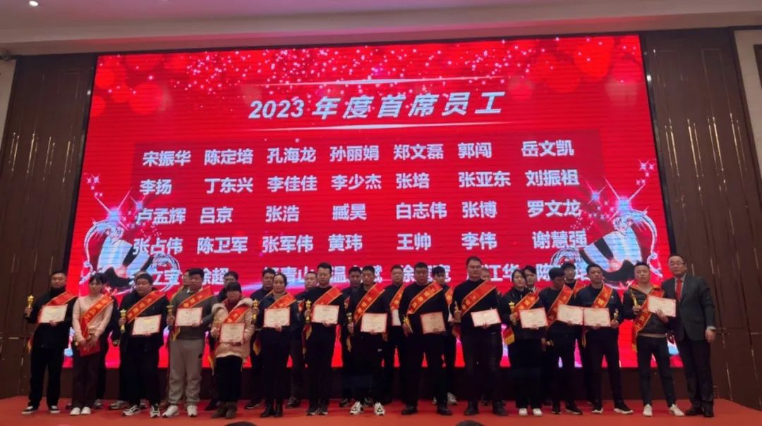 為表彰先進弘揚正氣,公司對于2023年度涌現(xiàn)出來的6個先進部門、34名首席員工、9名巾幗標兵予以通報表彰。頒獎典禮上,在歡快的樂聲中,劉總經(jīng)理親自為先進部門、首席員工和巾幗標兵頒發(fā)獎杯、獎金、榮譽證書及獎品,并興致勃勃地與先進部門、首席員工、巾幗標兵合影留念。