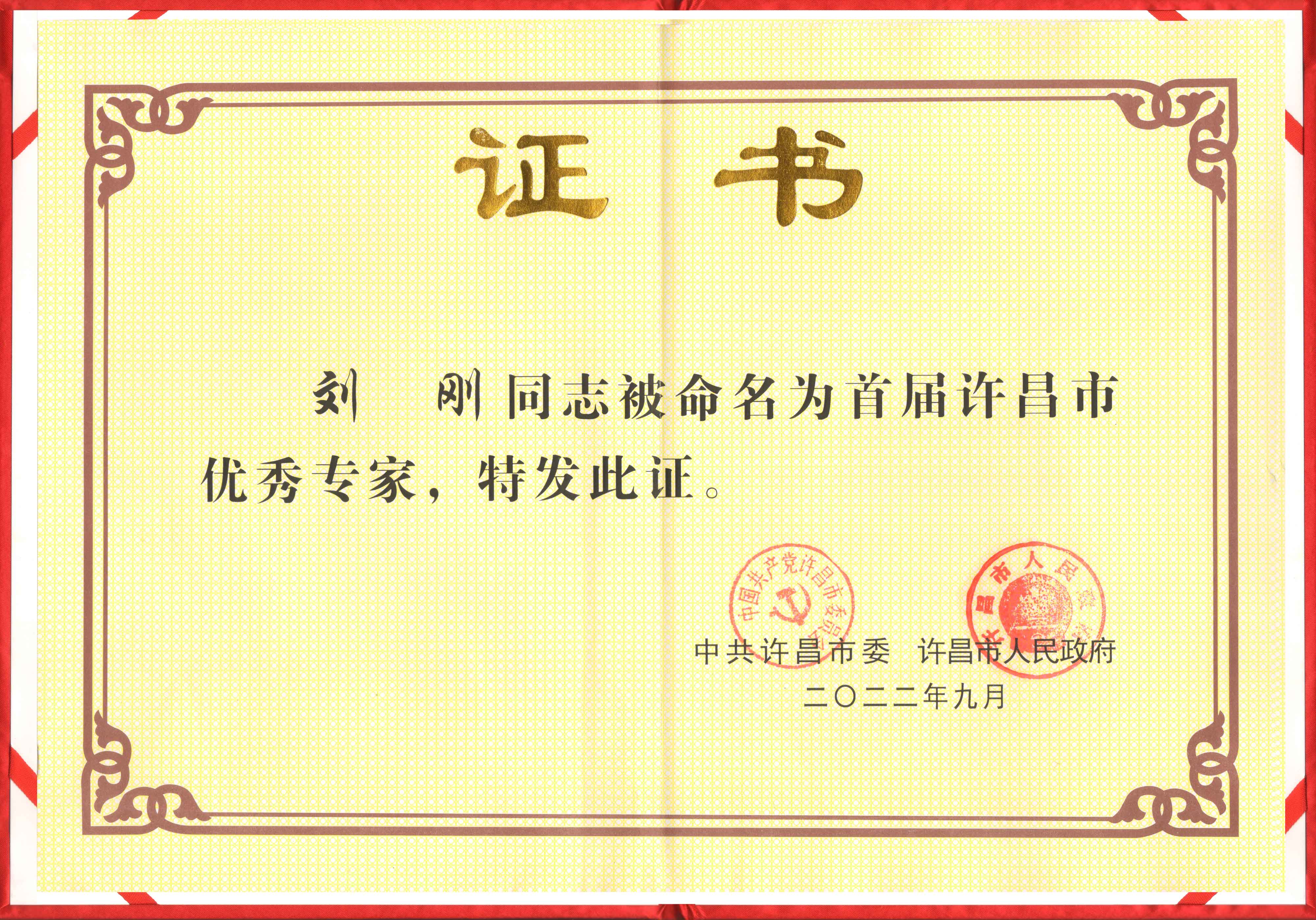 公司總經理劉剛榮獲首屆許昌市優秀專家