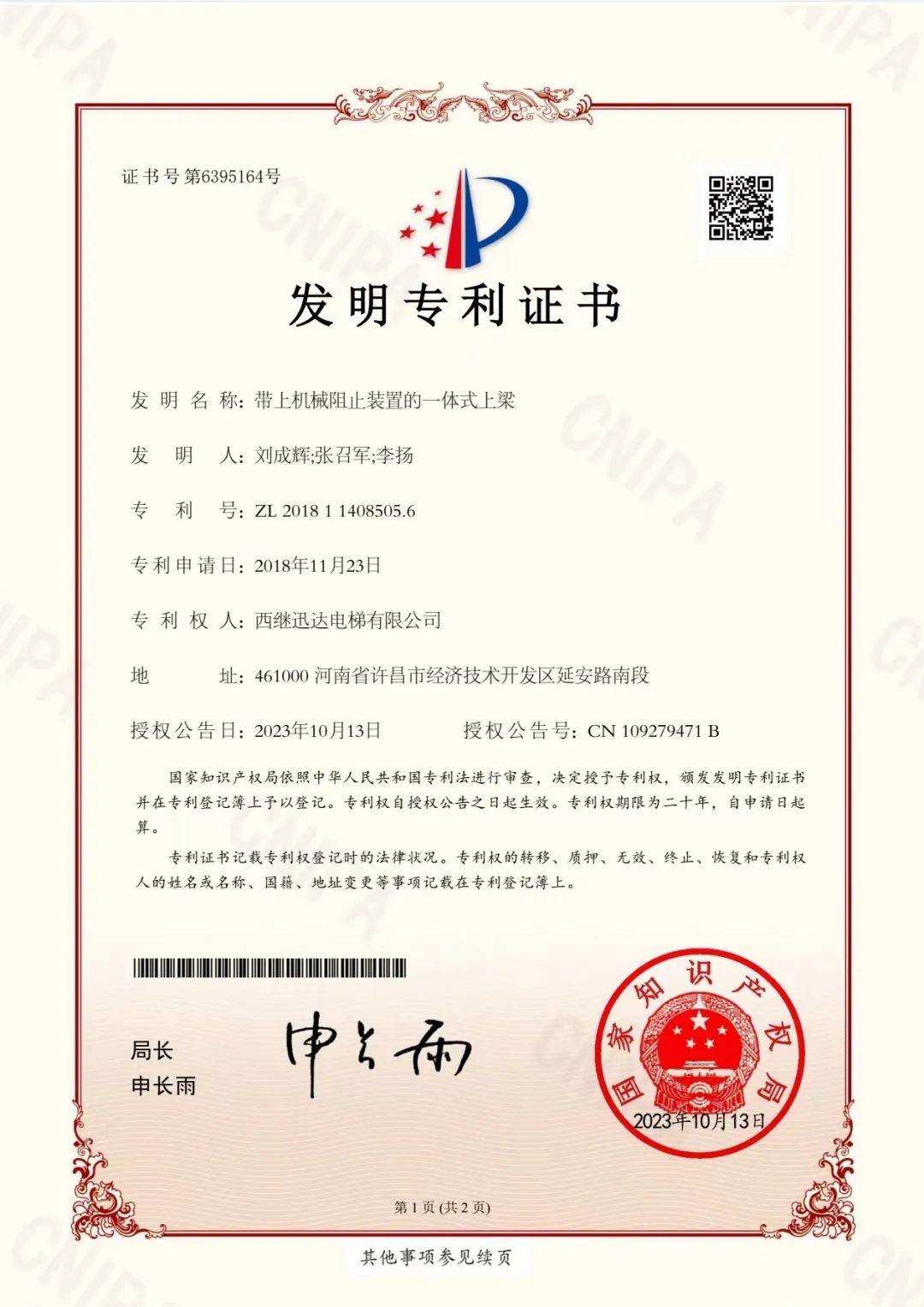 2023 民營企業(yè)發(fā)明專利 500 家榜單發(fā)布 西繼迅達(dá)電梯榜上有名